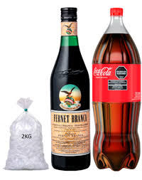 Fernet Branca de 750 ml Cocal regular 2,25 lts Bolsa de hielo 2 kgs